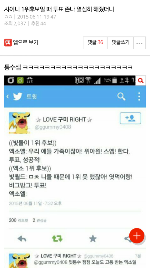 추천이 44개나 되더라 옹호하는 댓글도 많고