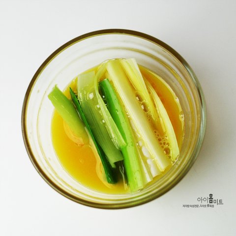 6 자른 대파는 매운맛을 빼기 위해 잠시 물에 담궈 놓는다