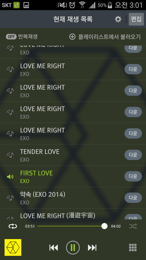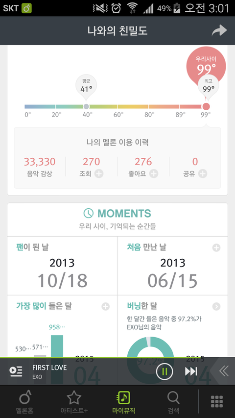 엑소노래 총 들은횟수 33,330번ㅋㅋㅋㅋ
