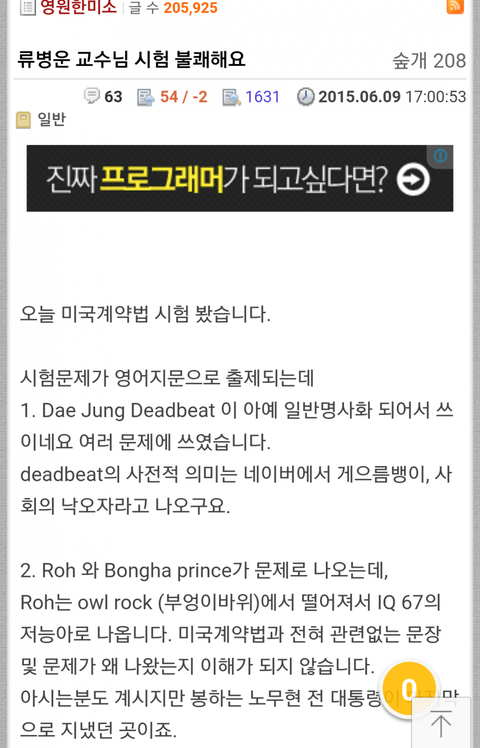 어느 대학 시험 클라스