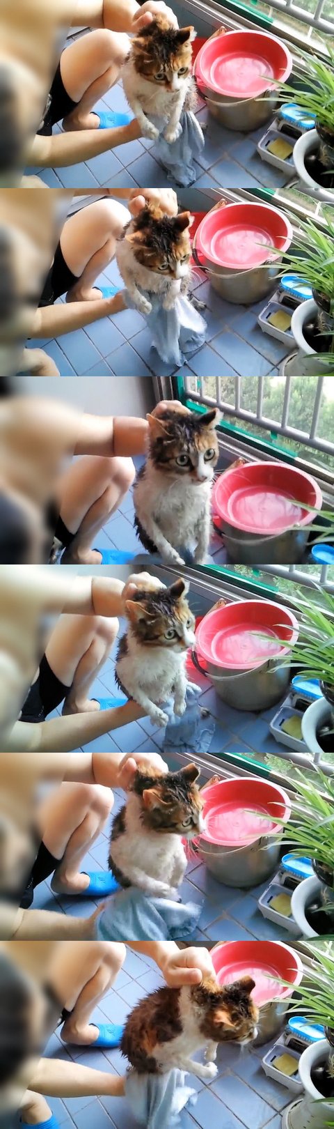 고양이들은 몸에 물이 닿는걸 싫어해서 걱정을 하긴 했지만,