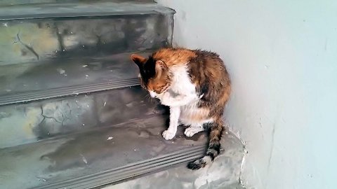 계단에 올라가 열심히 그루밍도 하네요^^(2014. 8. 1)