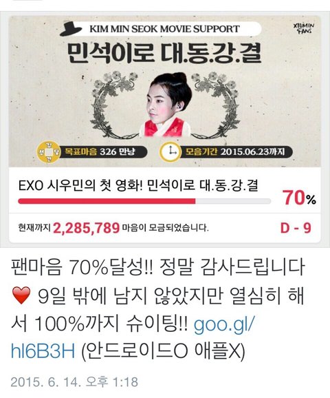 시우민 김선달 팬마음70%달성
