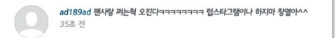 + 아악플달리기전에댓글놀이한게아니네요 ㅎㅎ 잘못알았어요 !! 악플달리고나서 팬들이기분상해할까봐 댓글놀이한거라네요 !!
