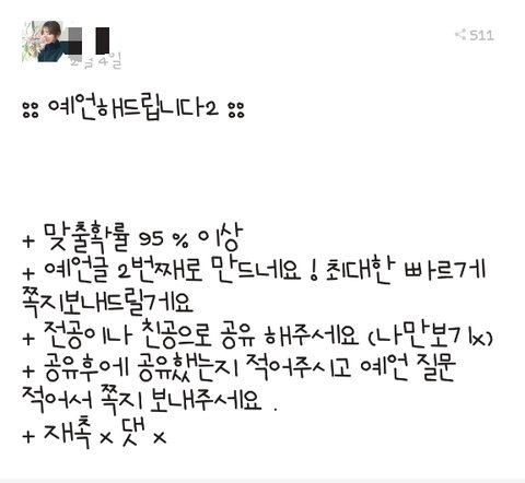 ..?자기가 예언을 어떻게함? 점쟁이세요? 그럼 점집을 차리는게 수입면으로는 훨씬 나을텐데