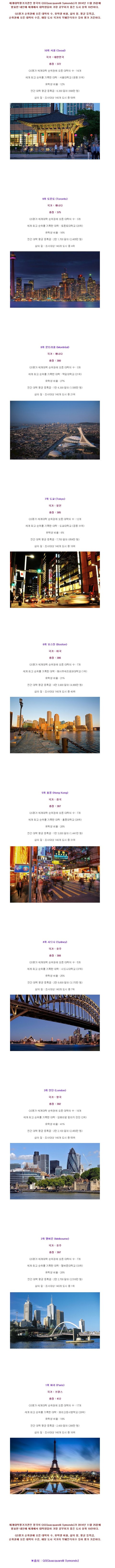 세계에서 대학생들이 가장 공부하기 좋은도시 BEST10