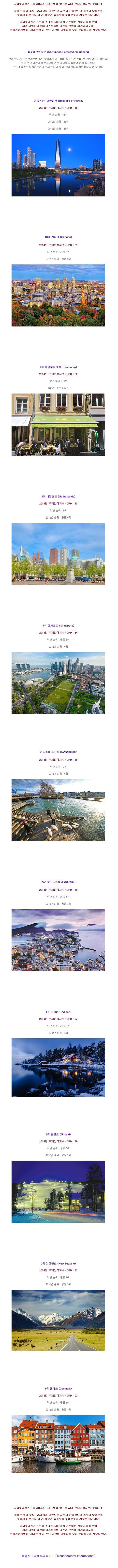 세계에서 가장 부패하지 않은 나라 BEST10