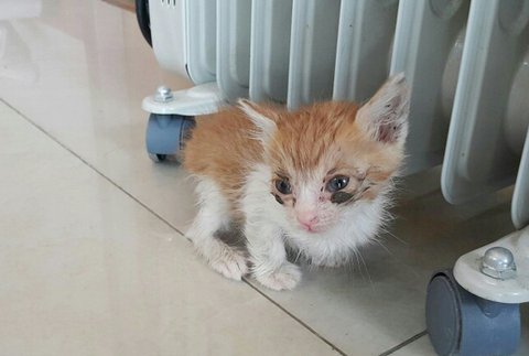 치즈 아이 역시 안구가 덜 성장 한듯 마찬가지로 고름으로 눈을 제대로 못 뜨고