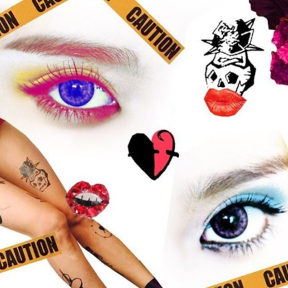 너무 대놓고 따라하는거 아님? 다리타투부터 야구방망이, 양갈래 분홍파랑 메이크업, 뒷배경 색깔까지