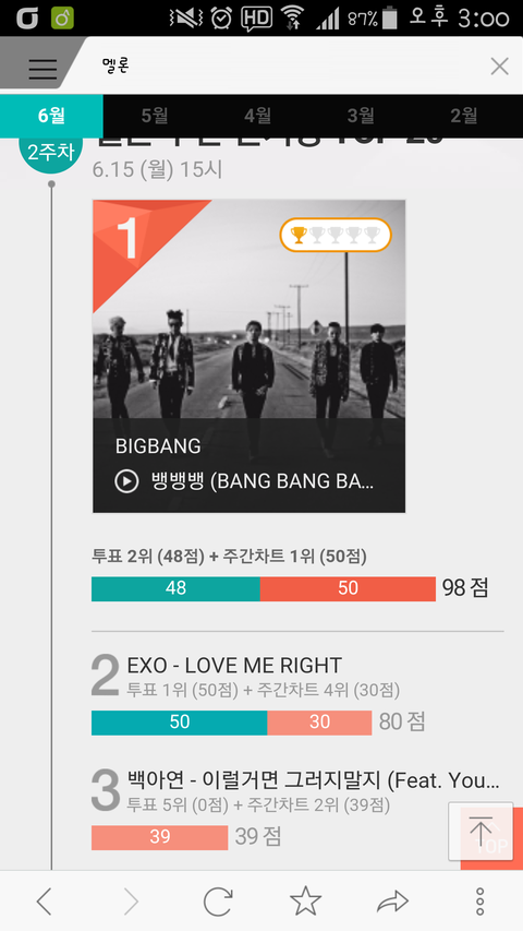 멜론주간인기상