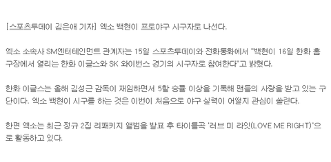 SM "엑소 백현, 16일 한화·SK 야구 경기 시구"…데뷔 후 첫 도전