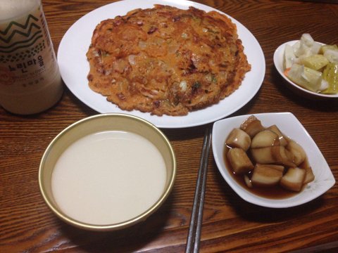 그냥 김치전이에요.. 다들 비오면 막걸리 생각나고.. 전 생각나고 그러자나요?
