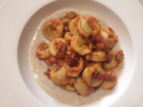 출장갔을 때 토르텔리니를 팔길래 사와서 크림소스에 곁들여 먹었어요.