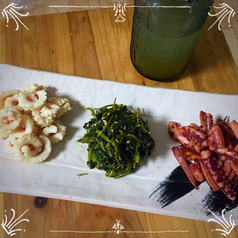 두가지맛 오징어와 유채나물, 유자 에이드