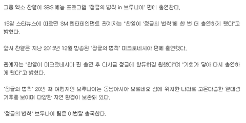 솔직히 찬열이 예능감도 별루더만...종대나 세훈이 보내지