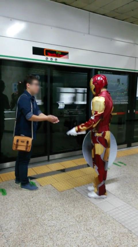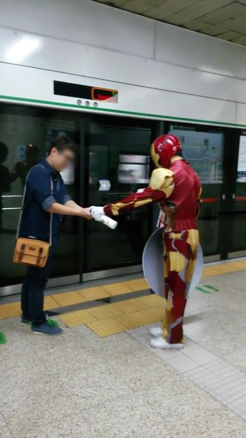 지하철 아이언맨 역시 아이언맨도 메르스예방을 위해 고군분투 중 ~~~
