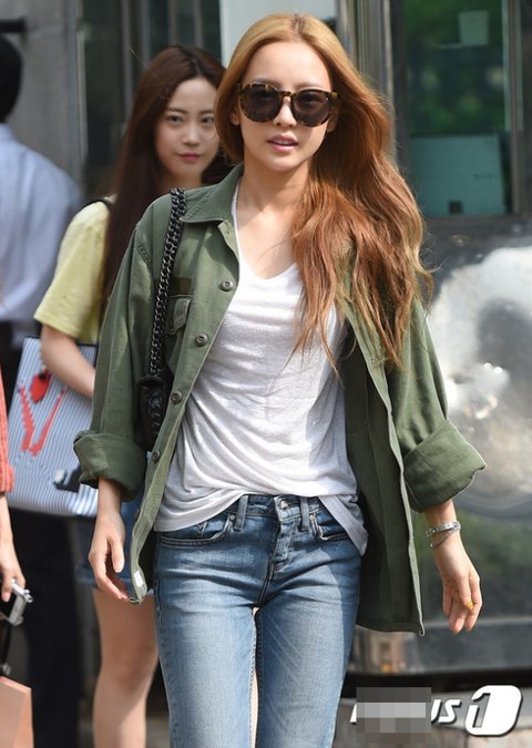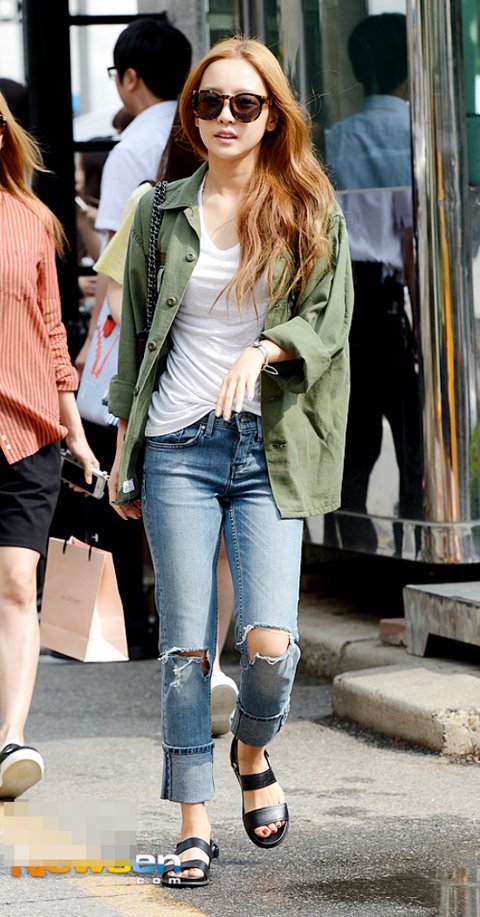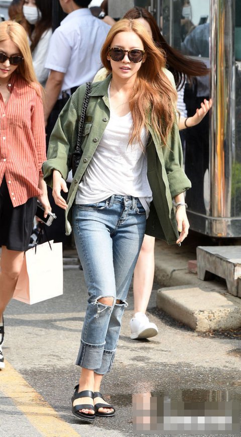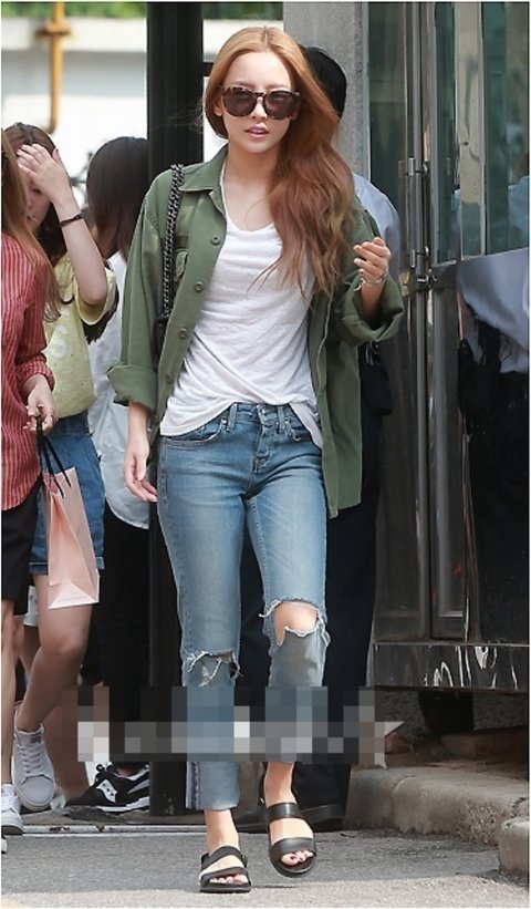 정말 흔한 청바지에 흰티에 야상만 걸쳤을뿐인 구하라