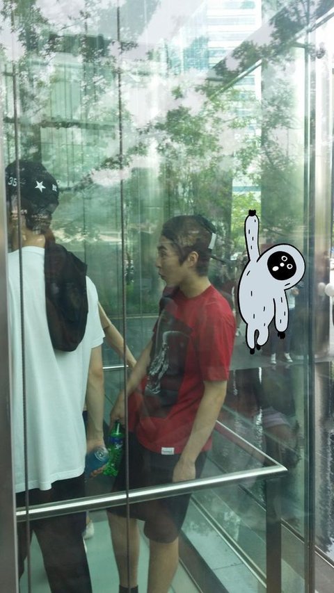 엘레베이터 타고 내려오면서 팬들 계속 봤대 ㅋㅋ
