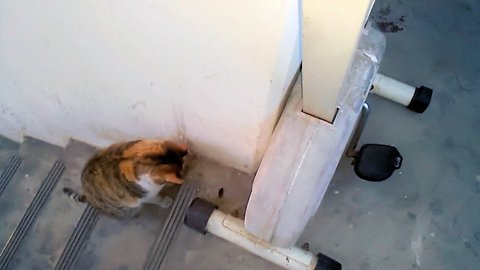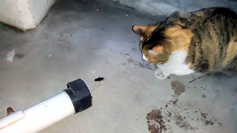 길고양이 람쥐가 집요하게 바퀴벌레를 쫓는 모습을