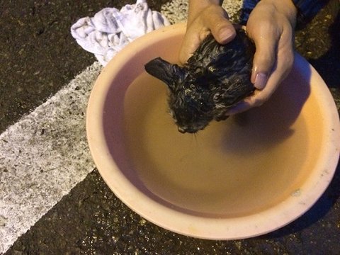 대야를 빌려서 목욕을 시켜주었습니다.