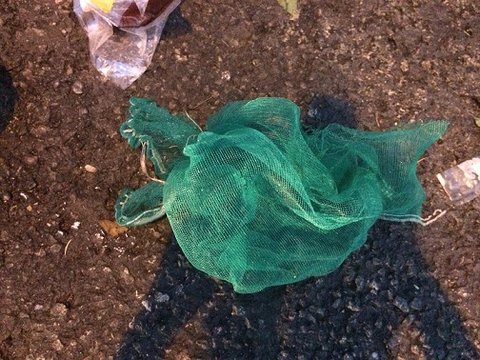 어떻게 쓰레기 더미 안에 양파망을 풀리지도 않게 돌돌 말아 묶어놓았는지......