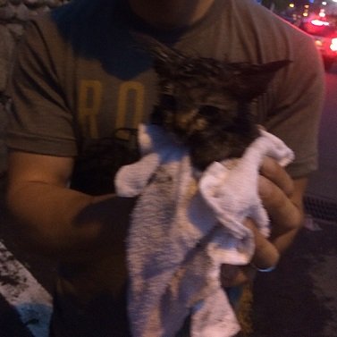 이 아이가 쓰레기통 더미에 양파망 안에 있던 작은 새끼 고양이 예요