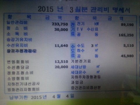 만나서 층별 관리비 고지서를 봤는데 개별 고지서랑 전혀 항목도 맞지 않고 금액도 맞지 않습니다.