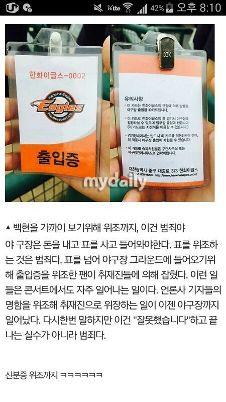 ㅅㅂ 백현팬 출입증 위조 기사남