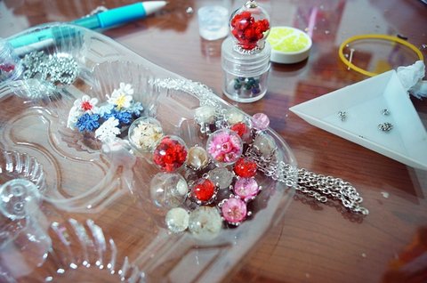 레진과비슷하게 유리볼안에 넣어 만드는것도있어요!
