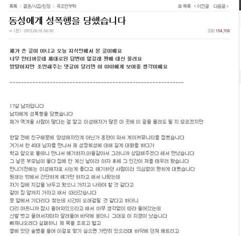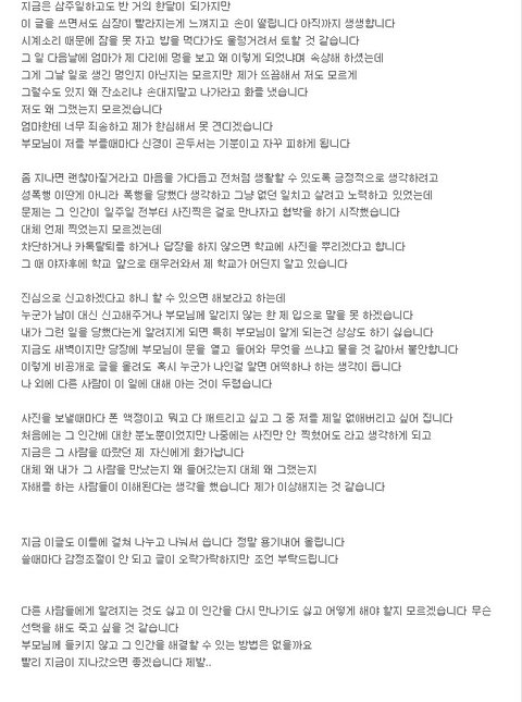 전에도 선후배사이에 성추행 문제로 쓴 학부모 글 내리더니..