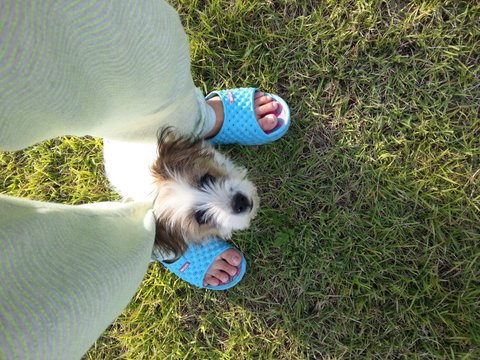 빨간 양파자루에 담아오셨음 ㅠㅠ (사실 강아지는 아니고 강아지에서 조금 성장한 ㅋㅋ 사람으로 치면 중1정도 ? ㅋㅋㅋ) 혹시나 물릴수도 있기에 양파자루에 담아주셨다고함 ㅋㅋㅋㅋ
