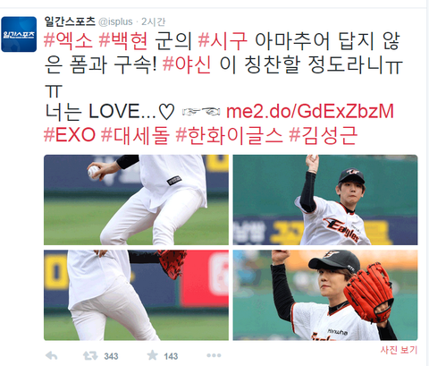 야구장을 들썩이게 만든 엑소 백현의 등장