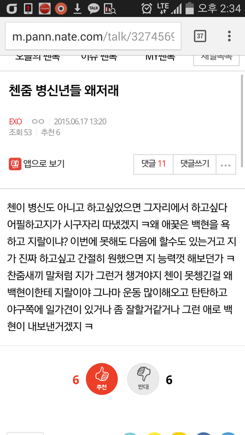 댓글보니까 슈줌 백줌 됴줌 거리던데ㅋㅋㅋㅋ누구줌인지 확신할순없어도 말하는꼬라지보니 악개짓많이한 어그로같애