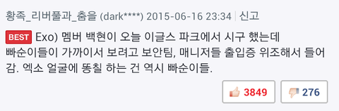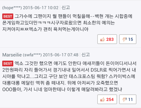 배댓새끼들이 지랄맞은거야 아니면 거기갔던 팬들이 지랄한거야