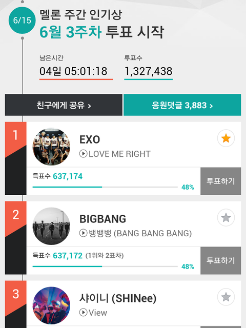 와 멜론투표 역전