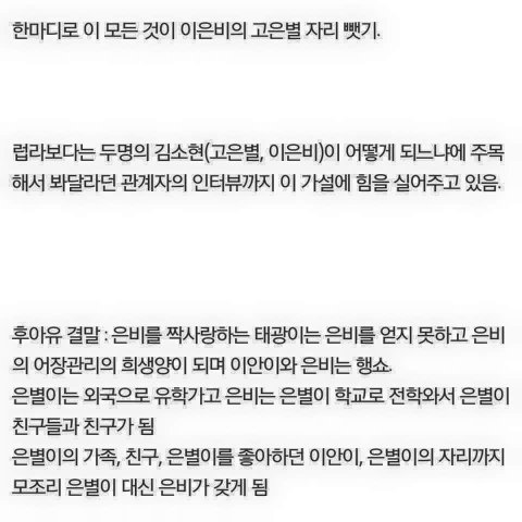 그럼 드라마는 뭘 말하고 싶은 거임 교육부 지원 드라마라고 하기엔 결론이 너무 막장이잖아.....언니 인생을 뺏은 동생이라니....