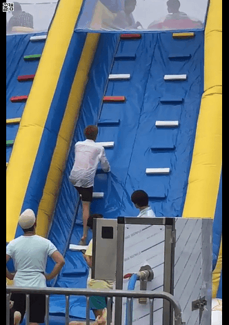 종인이 미끄럼틀 올라가는거봐