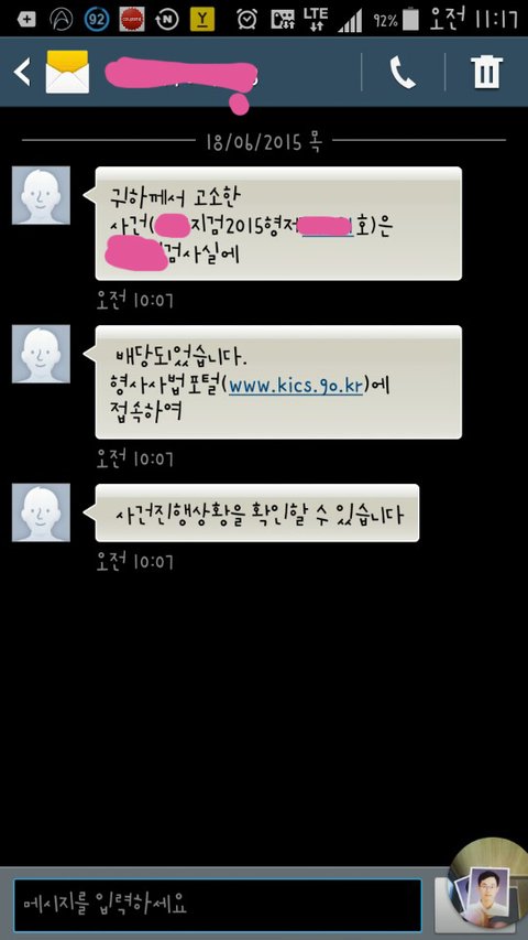 오늘 문자가 오길 검찰로 송치됬다고 연락이 왔습니다.