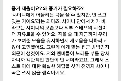 샤이니 종현 작곡작사한곡이 얼마나 많은데...민호도 랩매이킹 엄청 많이함. 샤이니가 못해서 타이틀곡을 작사작곡인 곡으로 안하는게 아니라는걸 알았으면 좋겠다.