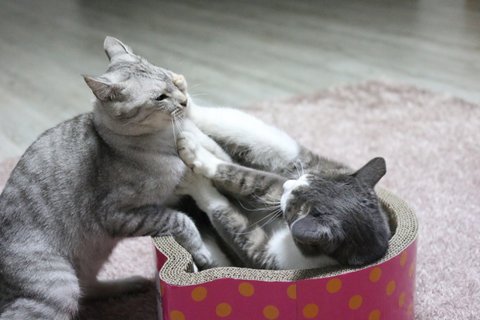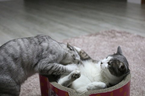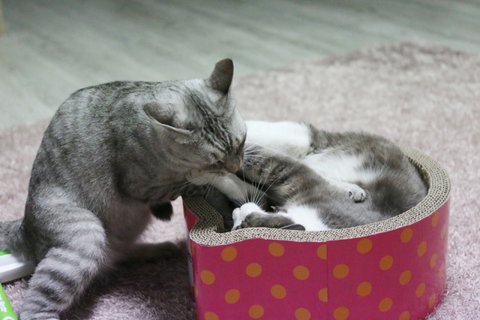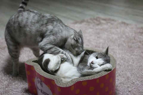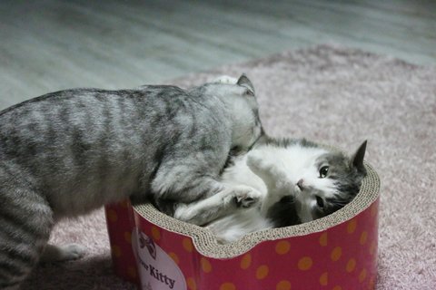 항상 아키가 시비 걸고 깨물지만 레이는 구르밍을 해줘요