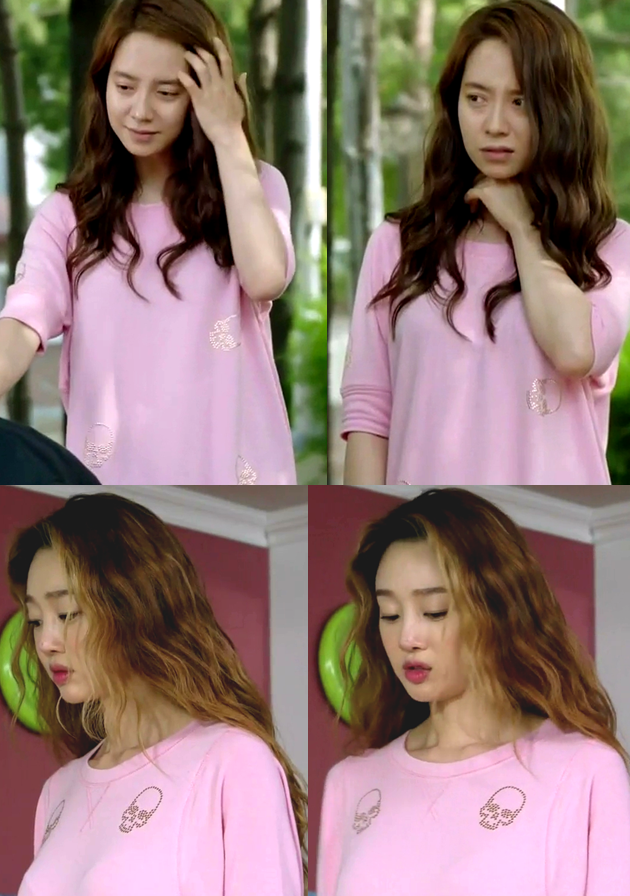 핑크의 끝을 보여주는 트리플썸 티셔츠를 얼굴로 소화하는 건 옵션..