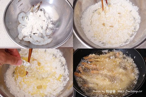 TIp. 새우를 손질 후 키친타월로 물기를 거의 제거해야 튀김이 잘 튀겨져요.