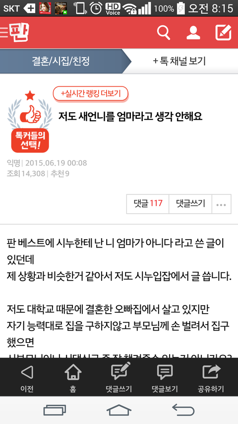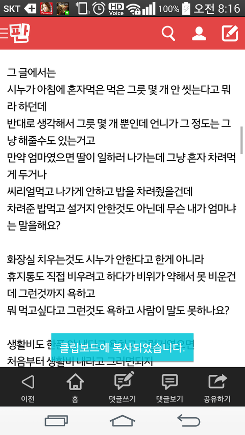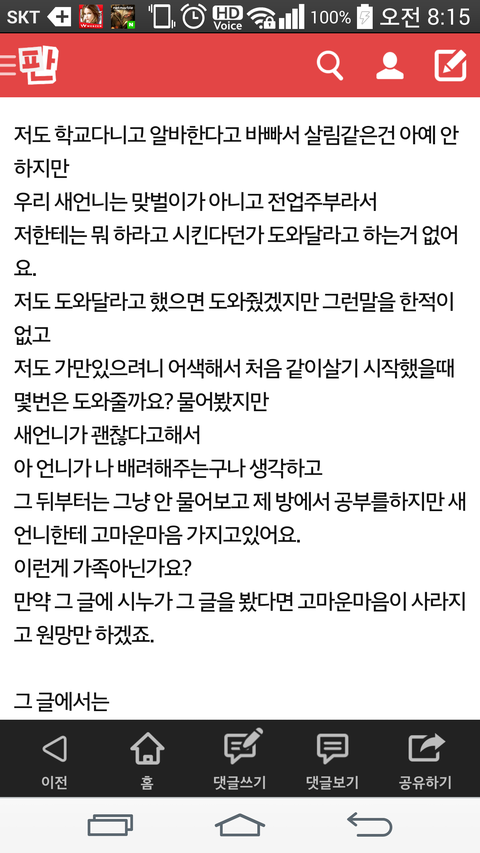 아니야 니가 싫은건 너의 새언니도 싫어 누군 화장실 휴지통 비우는게 좋아서 하니?