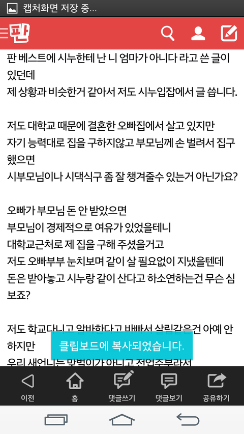원글쓴이가 부모욕까지 나오니깐 삭제하더라구요 그 전에 미치 캡쳐 해 둔 겁니다.