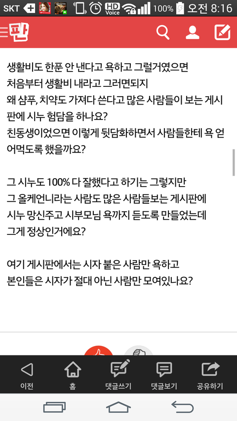 뭐가 자랑이라고 글을 올려선 욕먹고 가니