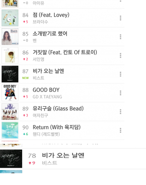 멜론 87위로 진입해서 78위까지 올라갔었넼ㅋㅋㅋ