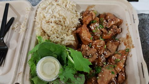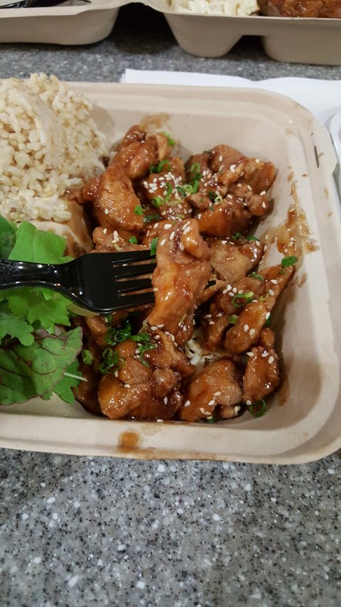 왜 현지인 강추인지 알겠어요 촉촉 달콤 쫍쪼롬한 마늘 양념과 바삭 바삭한 치킨 아~ 브라운 라이스와 환상의 궁합이로구나 야채 너는 배반이야 ㅡ ㅡ 너는 어느 별에서 왔니 ...야채 샐러드 비추....정 야채를 너므 너므 사랑하는분들만 시키세요