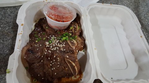 저는 갈릭 치킨과 비프스튜 그리고 갈비를 시켰습니다