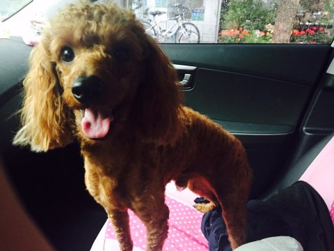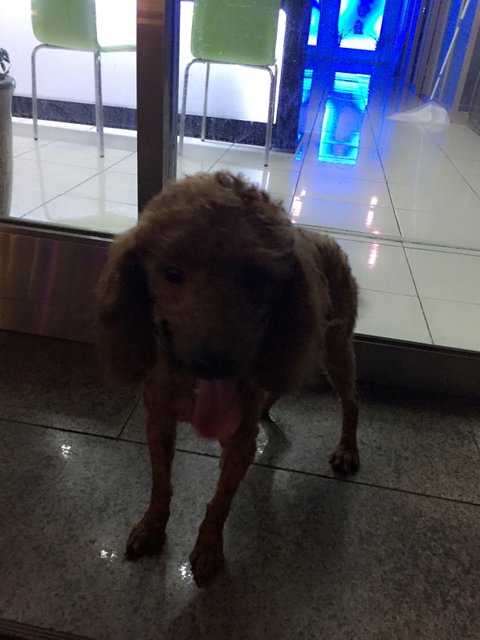 길동물병원 앞에서 혼자떨고있던 갈색푸들 한마리를 발견했습니다.