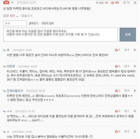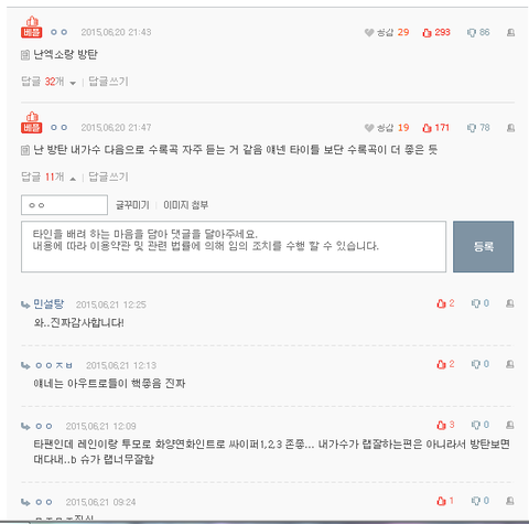 수록곡 좋은 아이돌 누가 있냐는 글인데 베플이 다 방탄이들임 (눙물)(오열)(감격)